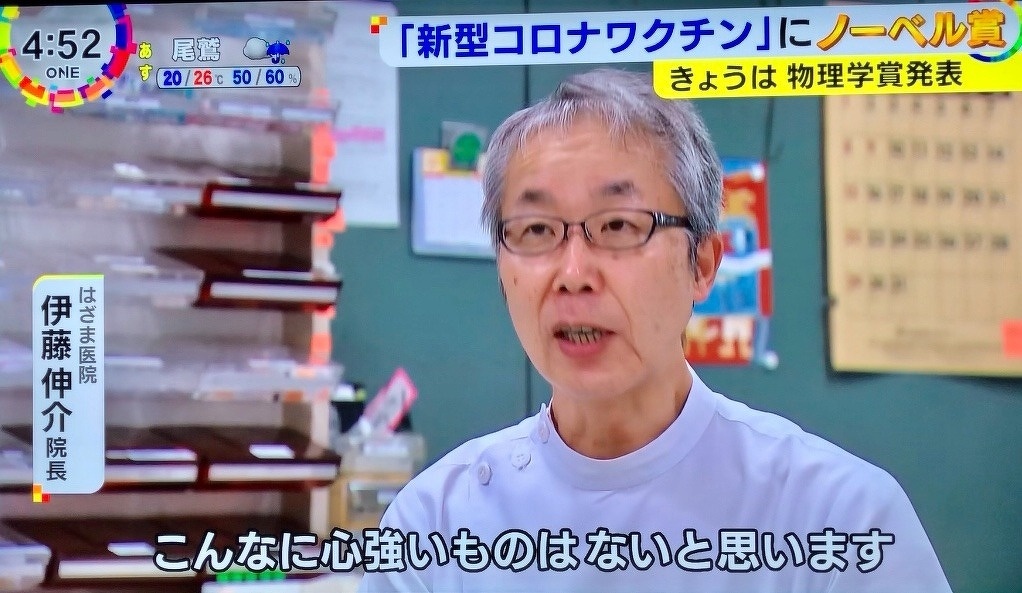 撮影は診療終了直後に行われ、mRNAワクチン開発やその効果について、院長伊藤伸介への思いが放送されました。